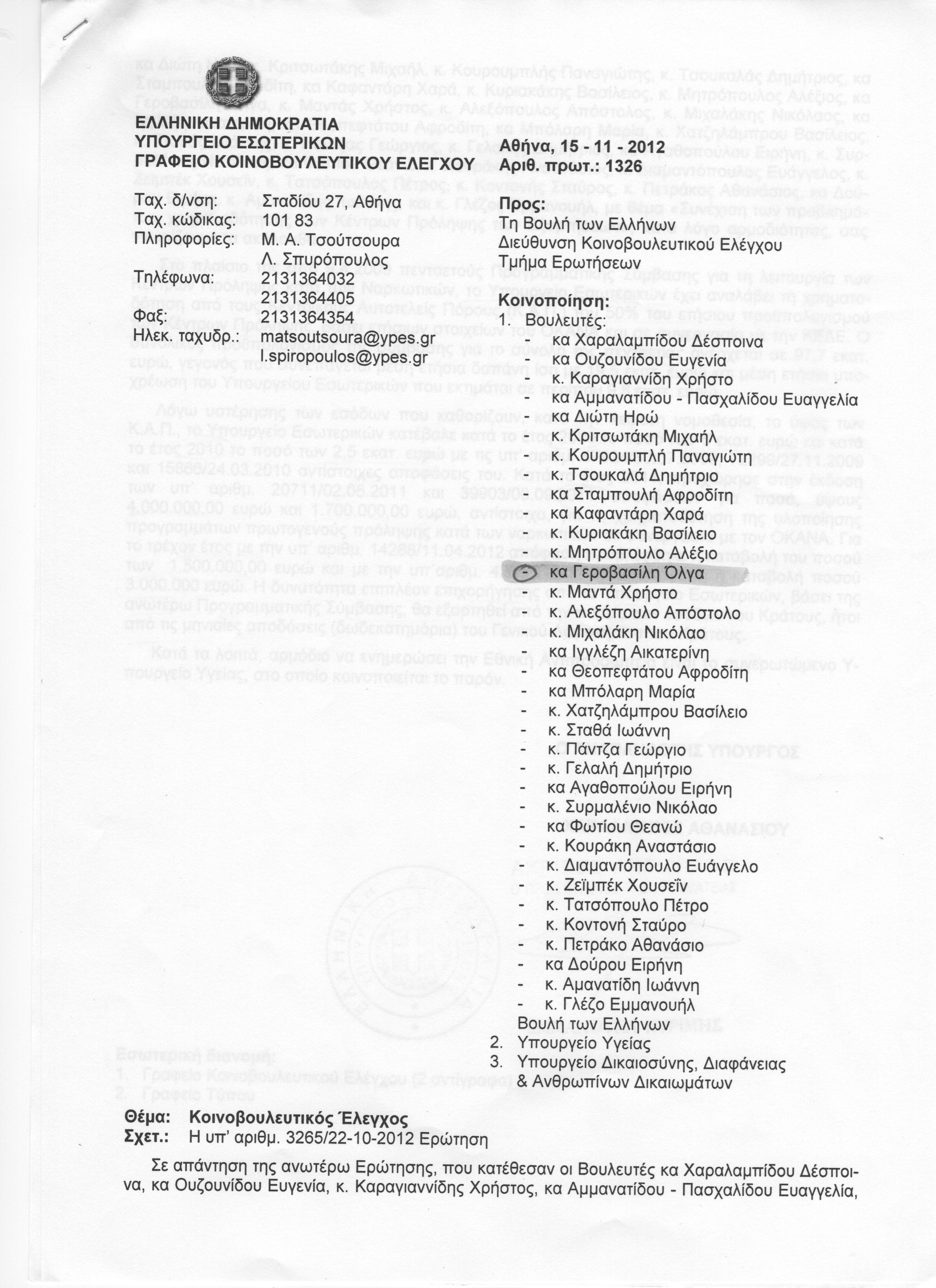 Δείτε το πρωτότυπο έγγραφο της απάντησης του Υπουργείου Εσωτερικών.