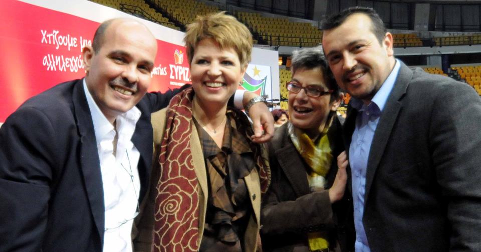 Με τον σύντροφο Νίκο Παππά, τη βουλευτή Α΄Αθηνών του ΣΥΡΙΖΑ-ΕΚΜ Μαρία Μπόλαρη και τον βουλευτή Ηρακλείου, Γιάννη Μιχελογιαννάκη.