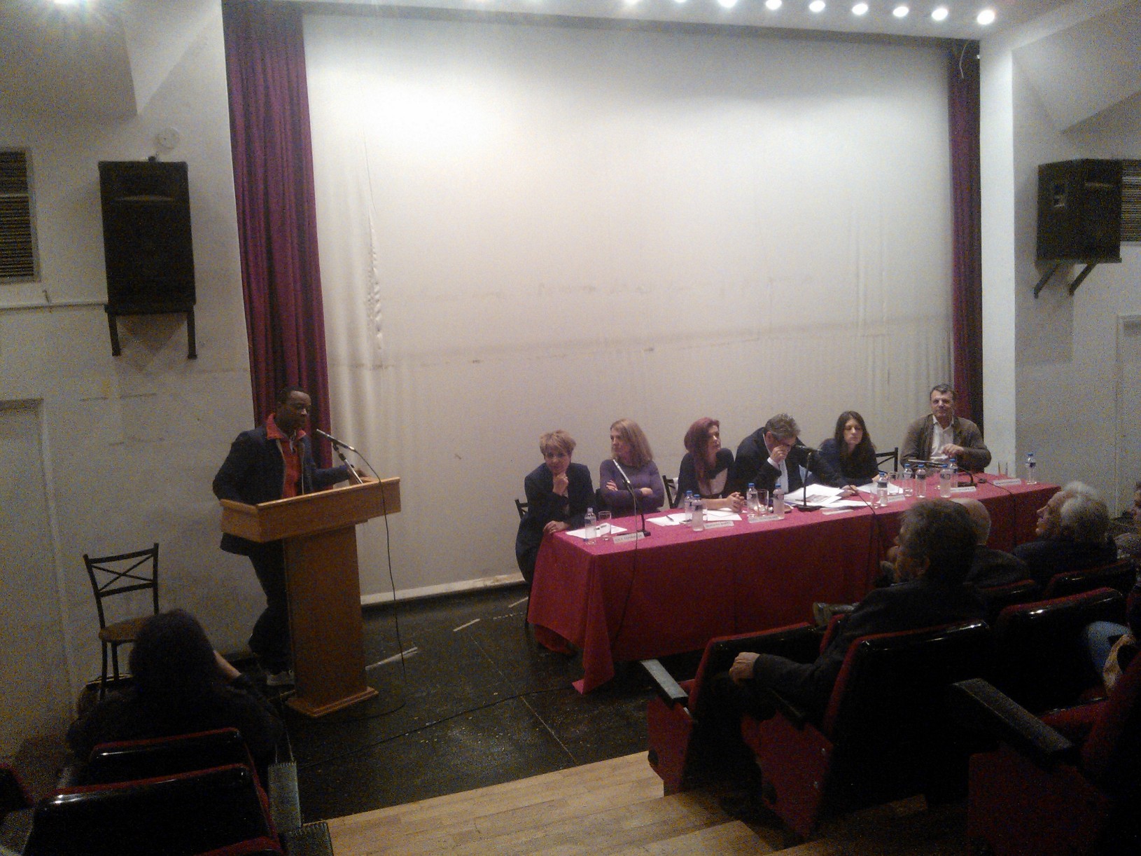 Συμμετείχαν με ομιλίες η Όλγα Γεροβασίλη, βουλευτής ΣΥΡΙΖΑ-ΕΚΜ, Μαρία Γιαννακάκη, βουλευτής ΔΗΜΑΡ, Μαριλέννα Κοππά, ευρωβουλευτής ΠΑΣΟΚ, Χαρά Μαρκατσέλη, μέλος τμήματος της Κ.Ε ΚΚΕ για τα δημοκρατικά δικαιώματα, Νίκος Χρυσόγελος, ευρωβουλευτής Οικολόγων Πράσινων, Δημήτρης Χριστόπουλος, αντιπρόεδρος της Ελληνικής Ένωσης για τα Δικαιώματα του Ανθρώπου. Συμετείχαν με παρέμβαση Γιάννης Βαρδουνιώτης– Β’ ΕΛΜΕ Πειραιά, Νικόδημος Μαϊνα Κινιούα– οργάνωση Asante, Κατερίνα Θωϊδου– ΚΕΕΡΦΑ και η Veldia Mutso, μετανάστρια δεύτερης γενιάς. Συντόνισε ο πρόεδρος του ΣΕΜ Κορυδαλλού- δημοτικός σύμβουλος Γιώργος Μακρυνός.