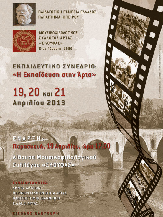 Το τριήμερο, από την Παρασκευή 19 μέχρι και την Κυριακή 21 Απριλίου 2013, διοργανώνεται στην πόλη της Άρτας Εκπαιδευτικό Συνέδριο με θέμα «Η ΕΚΠΑΙΔΕΥΣΗ ΣΤΗΝ ΑΡΤΑ».