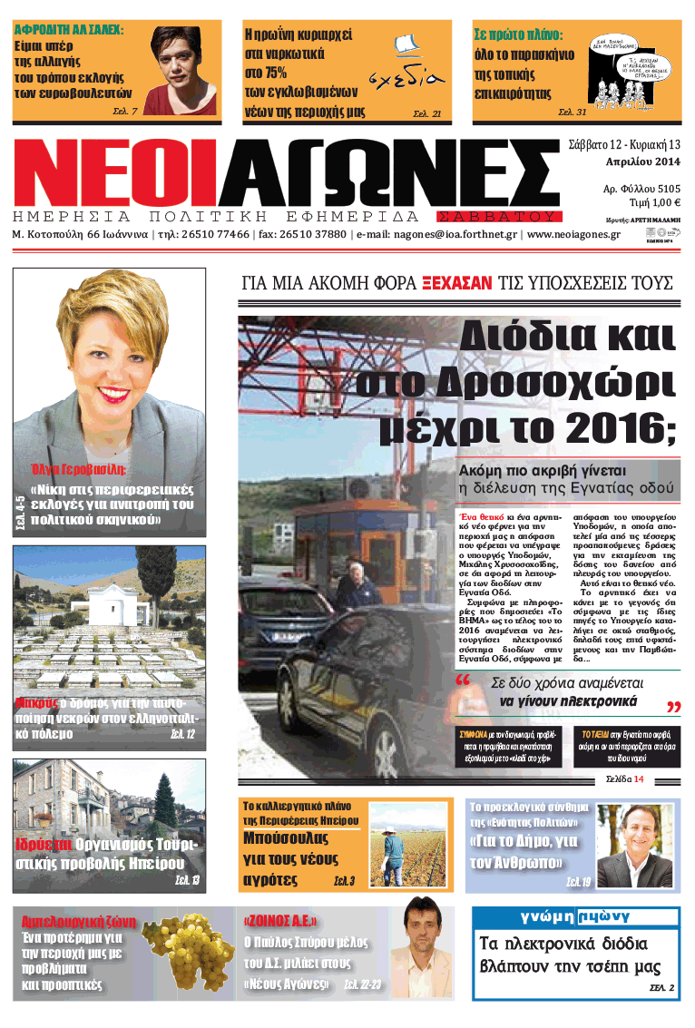Συνέντευξη στην εφημερίδα «ΝΕΟΙ ΑΓΩΝΕΣ» του Σαββάτου 12 Απριλίου 2014, στους δημοσιογράφους Σπύρο και Αλέξανδρο Θεμελή.