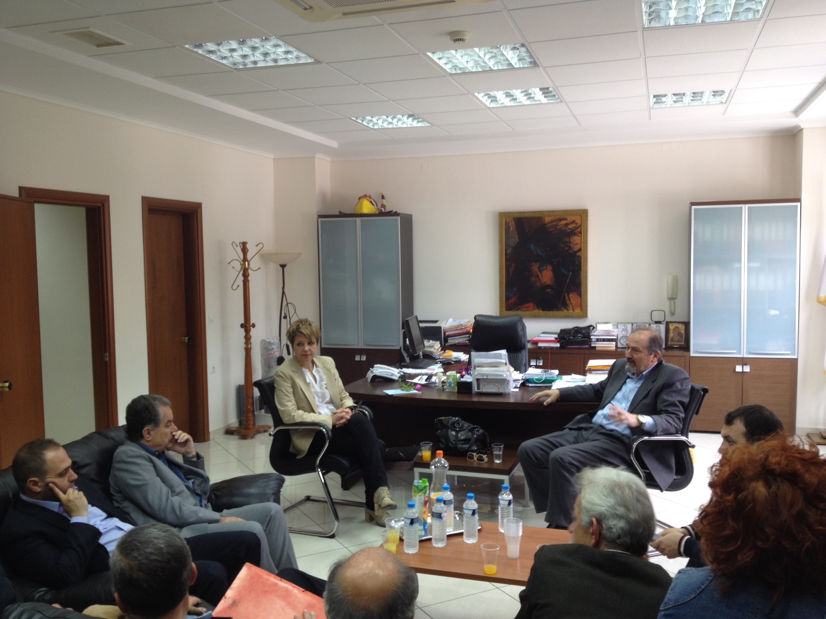 Στη συνέχεια, επισκέφθηκαν τον Δήμαρχο Ηγουμενίτσας κ. Γιώργο Κάτσινο στο Δημαρχιακό Μέγαρο, όπου, παρουσία και των αντιδημάρχων Ισμήνης Δήμα και Γεώργιου Κωλέττα, ανταλλάχθηκαν απόψεις για θέματα που αφορούν τον Καλλικρατικό Δήμο Ηγουμενίτσας.