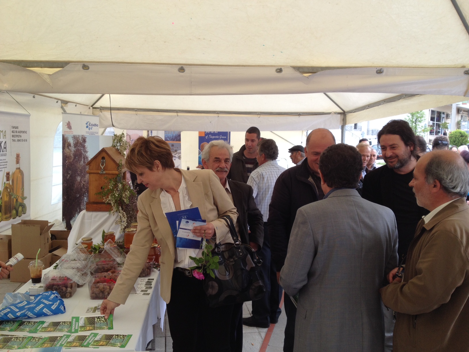 Στη συνέχεια, η υποψήφια Περιφερειάρχης με τον υποψήφιο αντιπεριφερειάρχη και τους υποψήφιους Περιφερειακούς Συμβούλους επισκέφθηκαν την έκθεση τοπικών αγροτικών προϊόντων στην πλατεία του Δήμου και συνομίλησαν με τους παραγωγούς και τους επισκέπτες της έκθεσης.