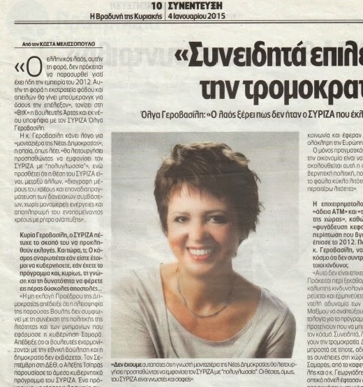 1. Κυρία Γεροβασίλη ο ΣΥΡΙΖΑ πέτυχε το σκοπό του να προκληθούν εκλογές. Και τώρα τι; Ο κόσμος αναρωτιέται εάν είστε έτοιμοι να κυβερνήσετε, εάν έχετε το πρόγραμμα και κυρίως την γνώση και την δυνατότητα να φέρετε σε πέρας δύσκολες αποστολές.