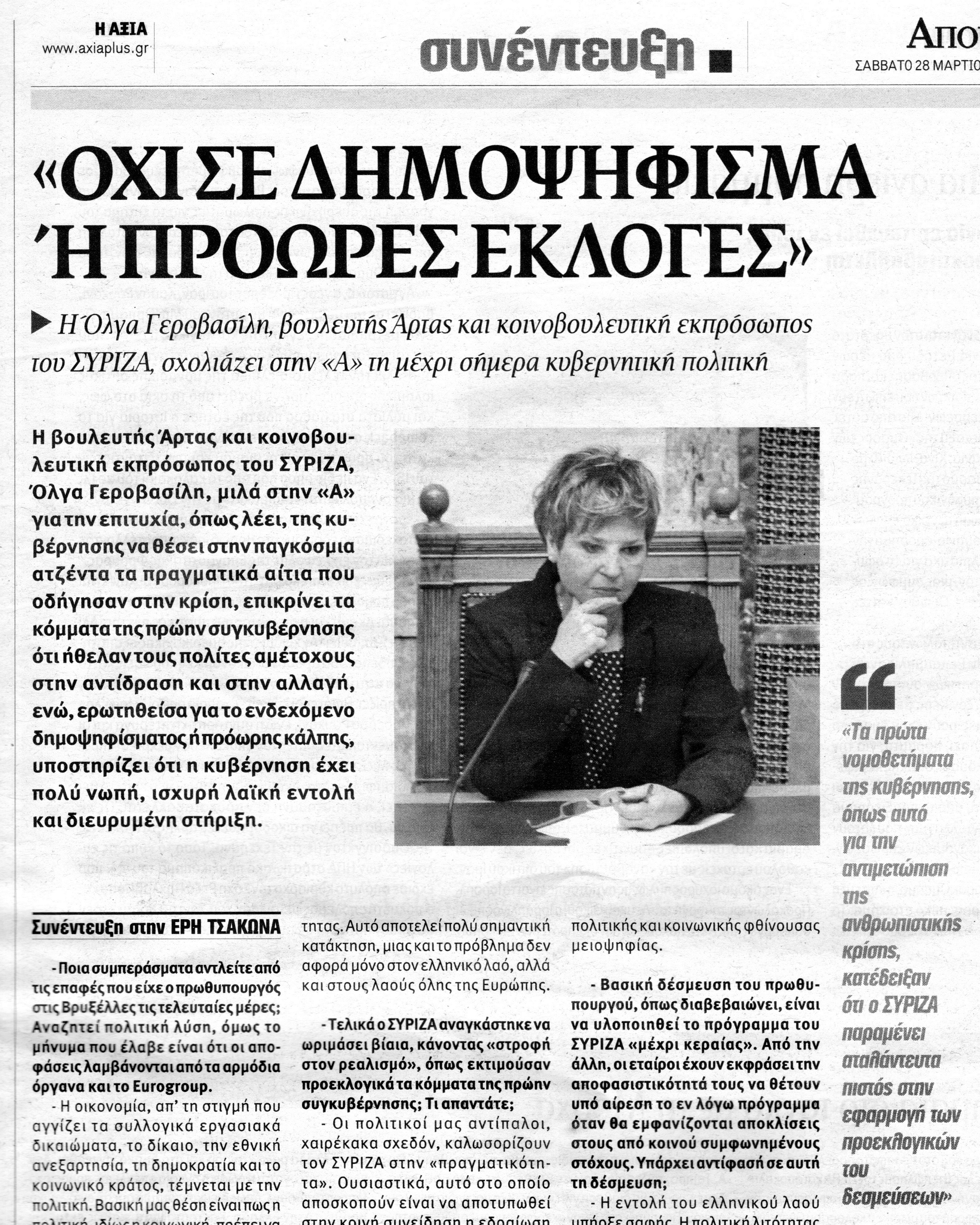 Συνέντευξη στην εφημερίδα «ΑΞΙΑ», στην Ερη Τσάκωνα, Σάββατο 28-3-2015