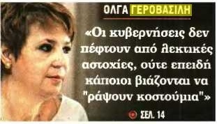 Οι κυβερνήσεις δεν πέφτουν από λεκτικές αστοχίες. Ούτε επειδή κάποιοι βιάζονται να «ράψουν κοστούμια», αλλά όταν δεν πετυχαίνουν στόχους. Ο Πρόεδρος των ΑΝΕΛ κατ’ επανάληψη επιβεβαίωσε την εμπιστοσύνη του στην κυβέρνηση. Δεν θα μπω σε μία ανούσια σπερμολογία. Ειδικά σε αυτήν την πολύ κρίσιμη περίοδο μίας σε εξέλιξη διπλής διαπραγμάτευσης για την αντιμετώπιση της οικονομικής και της προσφυγικής κρίσης, τις οποίες βιώνει η Ελλάδα.