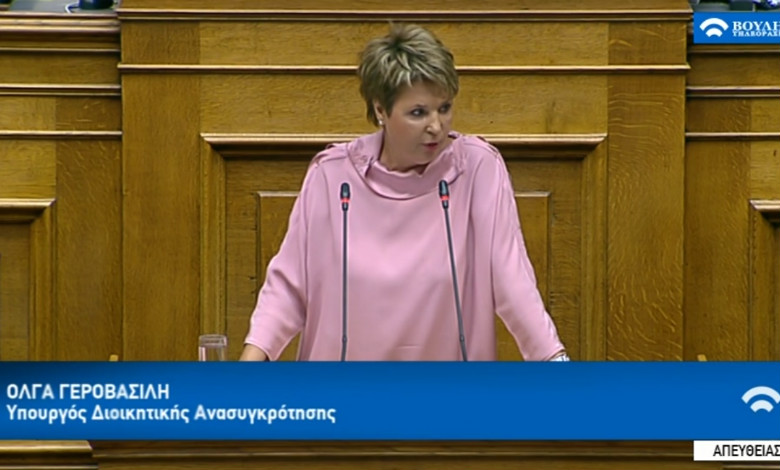 Ομιλία της Υπουργού Διοικητικής Ανασυγκρότησης, Όλγας Γεροβασίλη, κατά τη συζήτηση επί της προτάσεως δυσπιστίας κατά της Κυβέρνησης, που υπέβαλαν ο Αρχηγός της Αξιωματικής Αντιπολίτευσης και Πρόεδρος της Κοινοβουλευτικής Ομάδας της Νέας Δημοκρατίας, κ. Κυριάκος Μητσοτάκης, και 75 Βουλευτές της Κοινοβουλευτικής του Ομάδας, σύμφωνα με τα άρθρα 84 του Συντάγματος και 142 του Κανονισμού της Βουλής.