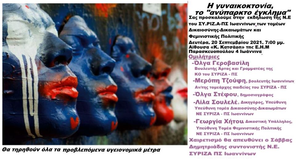 Ομιλία στην εκδήλωση-συζήτηση της Ν.Ε. του ΣΥΡΙΖΑ-ΠΣ Ιωαννίνων με θέμα τις γυναικοκτονίες