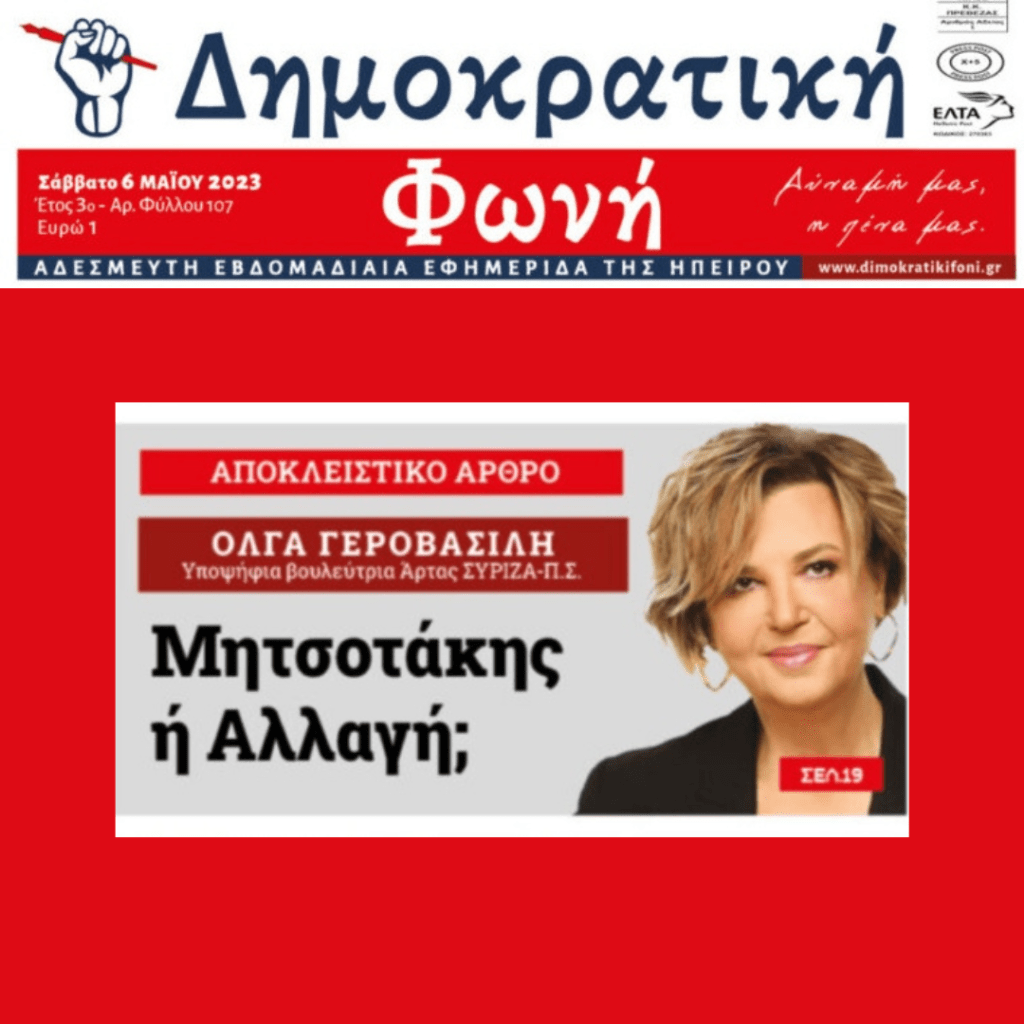 Άρθρο στην εβδομαδιαία εφημερίδα της Ηπείρου «Δημοκρατική Φωνή»