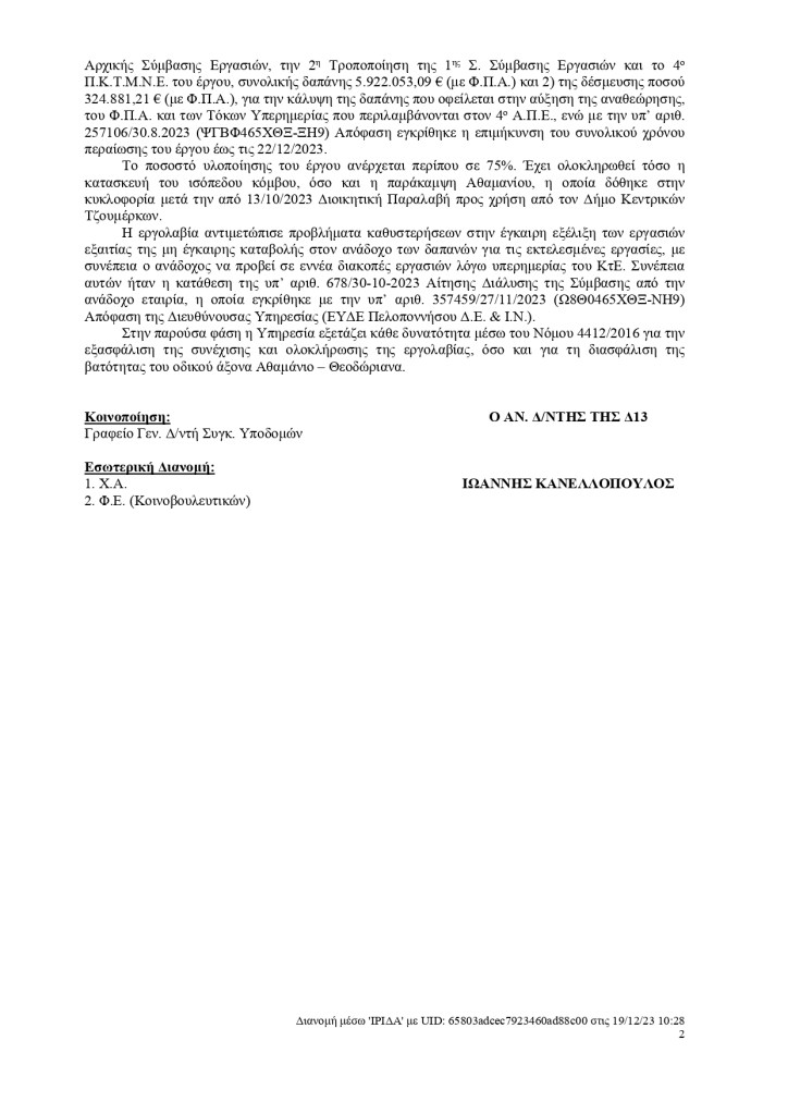 Το δια ταύτα παραμένει ότι παρά την κήρυξη σε κατάσταση Έκτακτης Ανάγκης Πολιτικής Προστασίας του Δήμου Κεντρικών Τζουμέρκων έως και 1.5.2024 και την ανάγκη προσπελασιμότητας του δικτύου, παρά την ανάγκη αποπεράτωσης του έργου, το οποίο και αναπτυξιακό χαρακτήρα έχει και θα συμβάλει στην άρση της απομόνωσης της ορεινής κοινότητας Θεοδωριάνων, το Υπουργείο αντί να δώσει λύση ..την αναζητά!