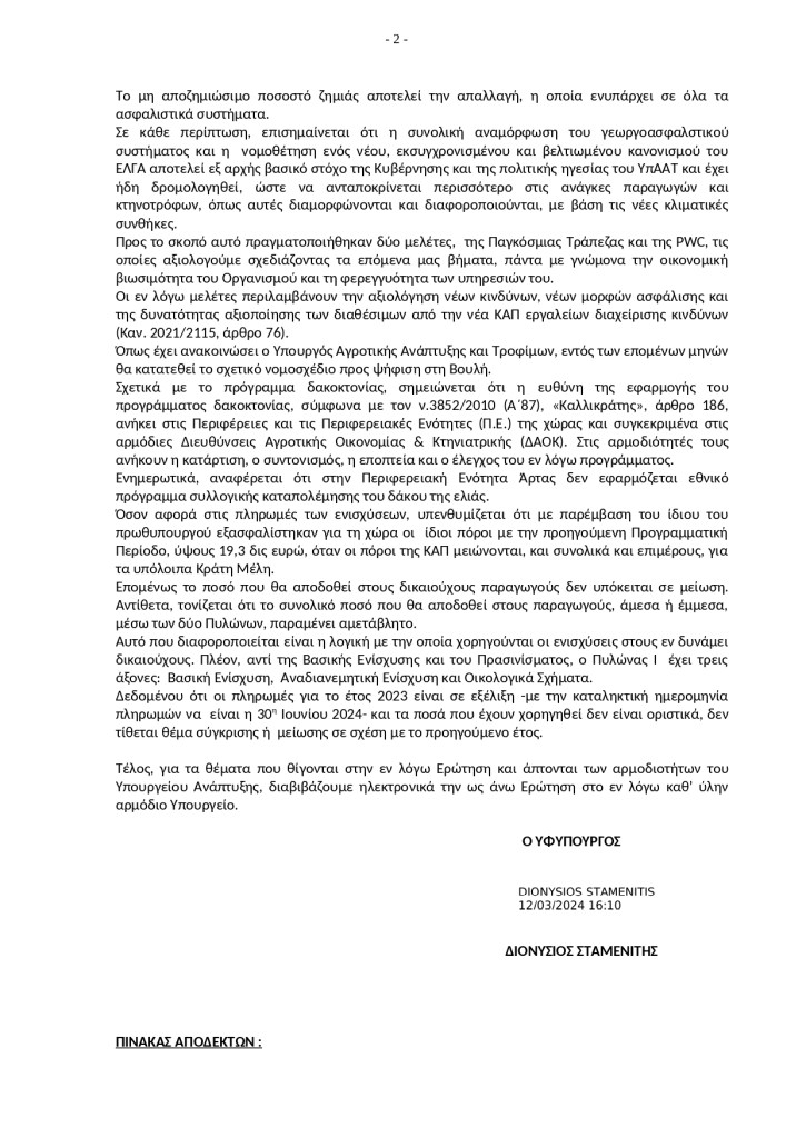 Επισυνάπτεται η απάντηση του Υπουργείου:
