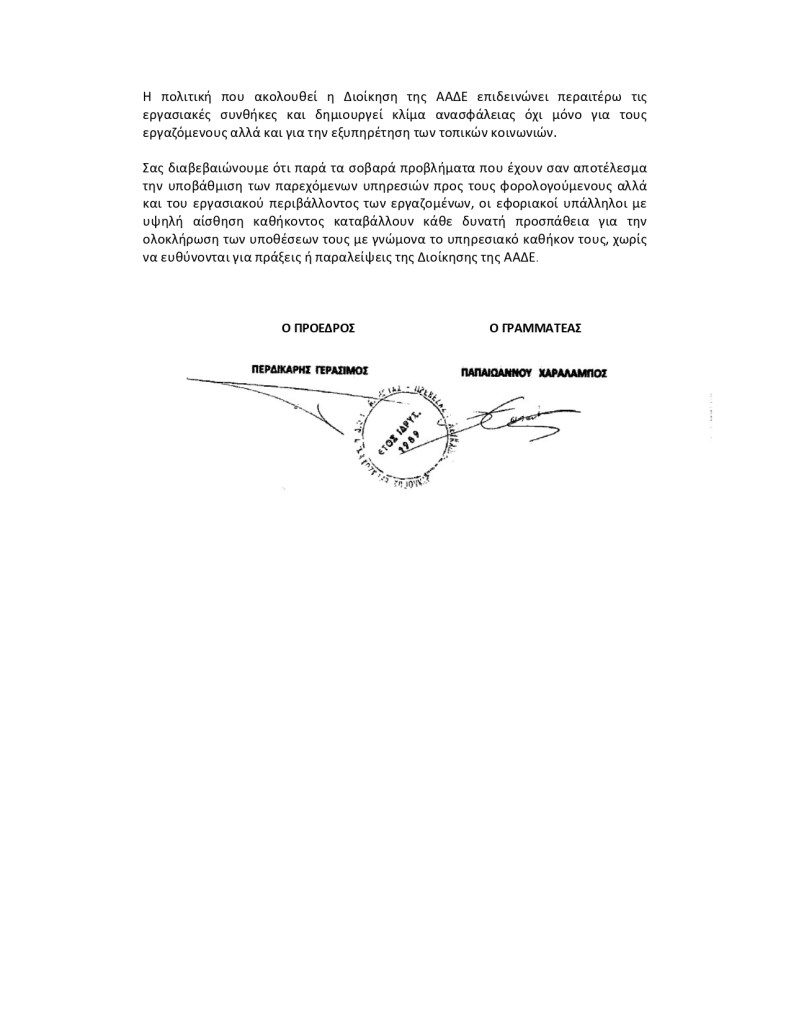 Ταυτόχρονα αναδεικνύονται τα προβλήματα που δημιουργεί η σχεδιαζόμενη κεντρικοποίηση υπηρεσιών της ΑΑΔΕ σε συνδυασμό με την ελλιπή ψηφιοποίηση αλλά και η ανάγκη αύξησης των απολαβών των υπαλλήλων, οι οποίες εκμηδενίζονται σε συνθήκες ακραίας ακρίβειας που επικρατούν στην ελληνική οικονομία.