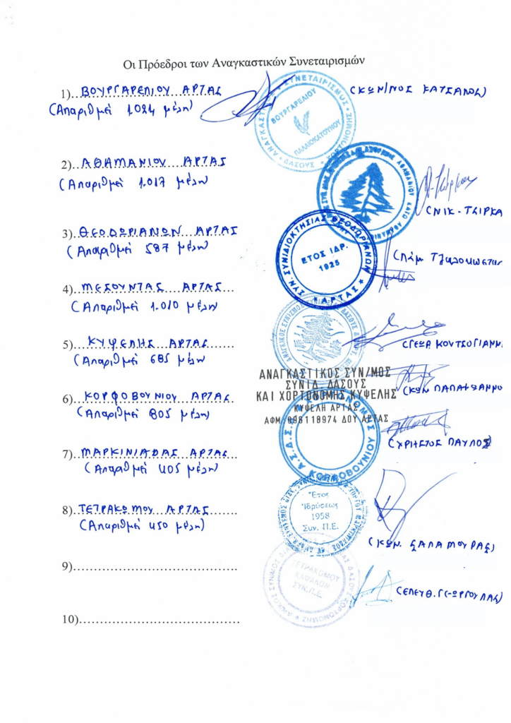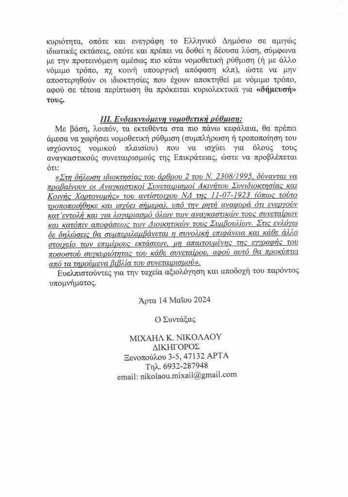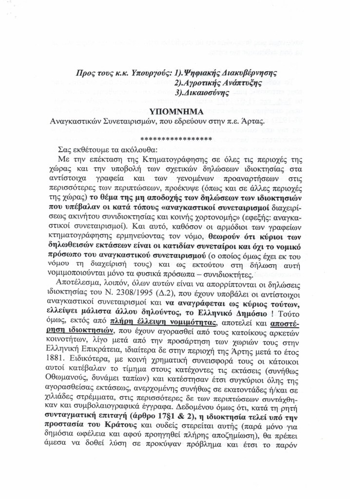 Επισυνάπτεται το 14.05.2024 Υπόμνημα των Αναγκαστικών Συνεταιρισμών Άρτας.