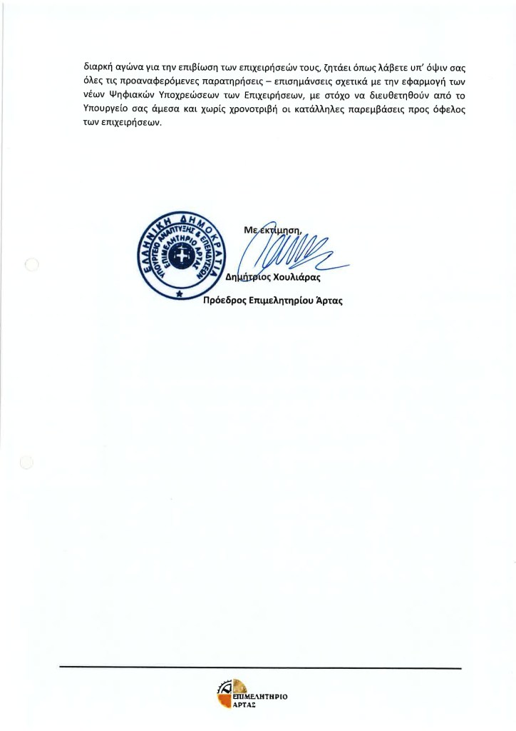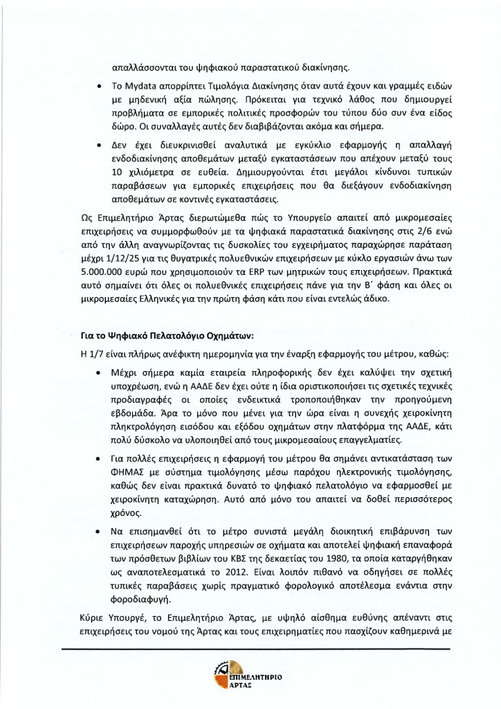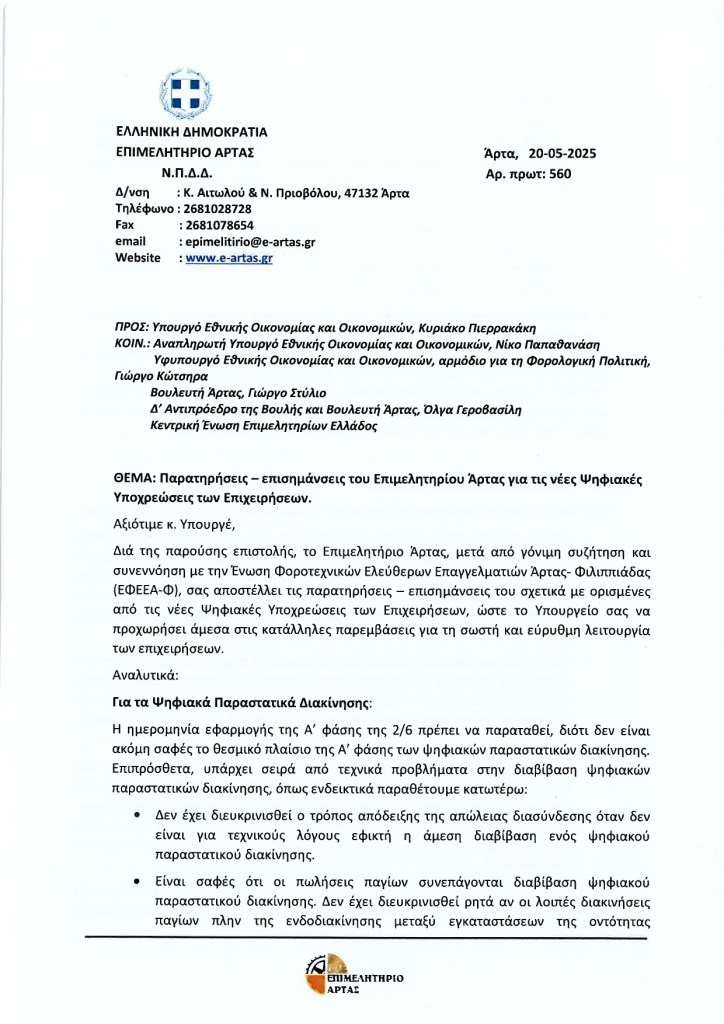 Επισυνάπτεται η αναφορά και η υπ’ αριθμ. 560/20.05.2025 Επιστολή του Επιμελητηρίου Άρτας.