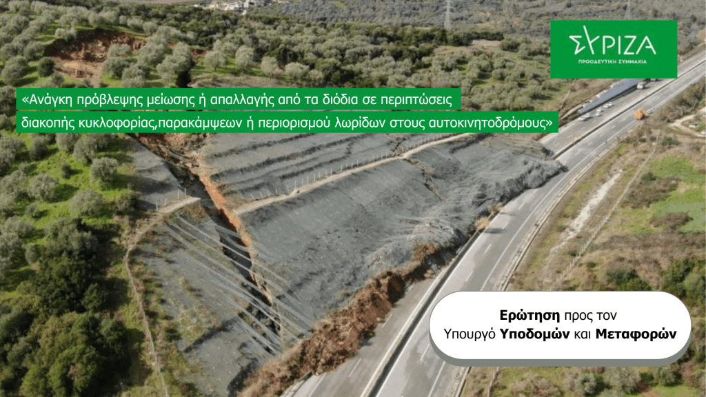 Επειδή οι πολίτες δεν μπορεί να επιβαρύνονται με το πλήρες κόστος των διοδίων όταν η παρεχόμενη υπηρεσία είναι περιορισμένη ή υποβαθμισμένη,
