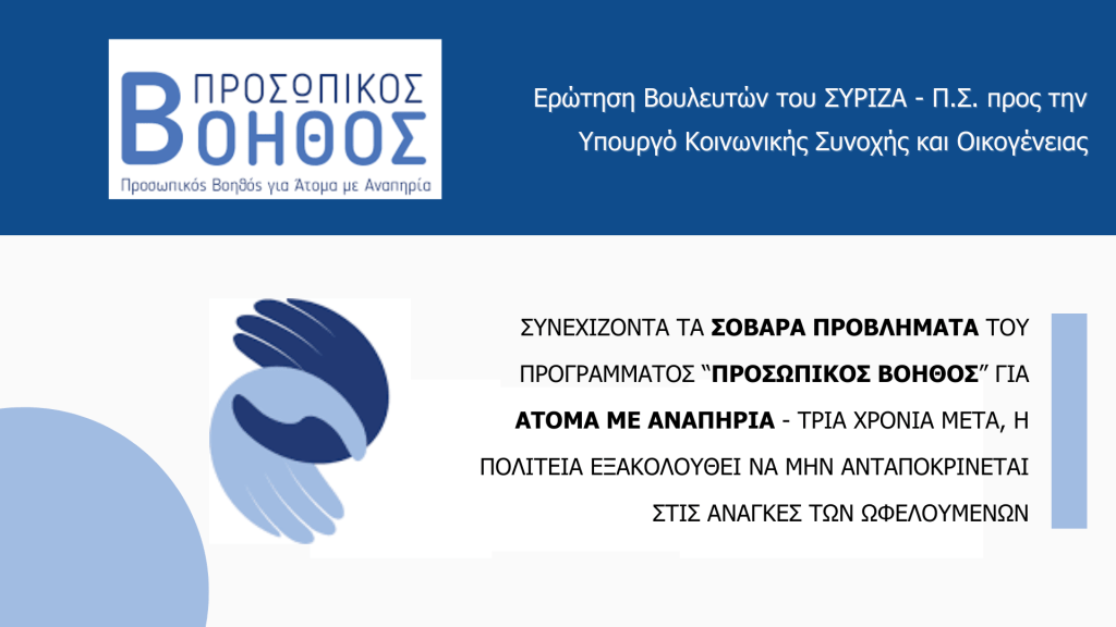 Ερώτηση Βουλευτών του ΣΥΡΙΖΑ – Π.Σ. προς την Υπουργό Κοινωνικής Συνοχής και Οικογένειας