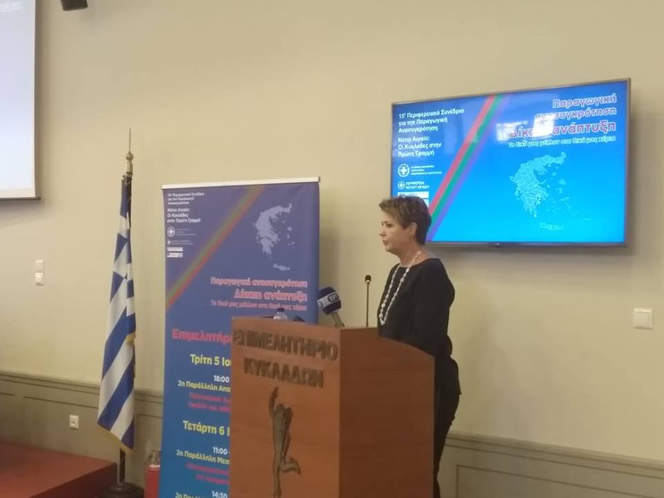 Ομιλία της Υπουργού Διοικητικής Ανασυγκρότησης, Όλγας Γεροβασίλη, στο 15ο Περιφερειακό Συνέδριο για την Παραγωγική Ανασυγκρότηση «Νότιο Αιγαίο: Οι Κυκλάδες στην Πρώτη Γραμμή» και τη συνεδρία «Ψηφιακές Υπηρεσίες και Δημόσια Διοίκηση», που διεξάγεται στην Ερμούπολη της Σύρου