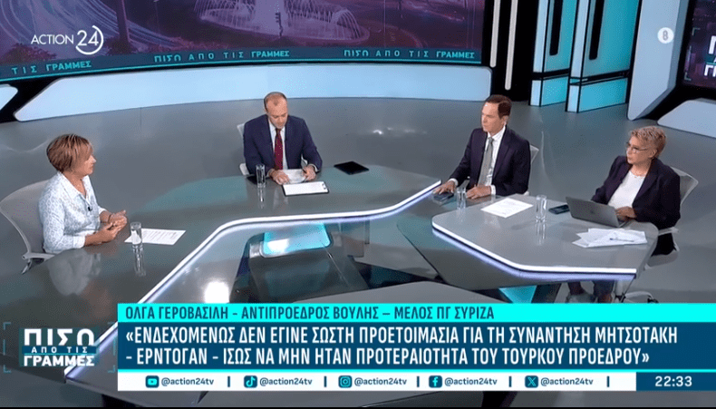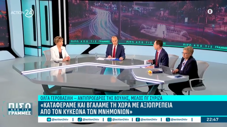 Συνέντευξη στην εκπομπή “Πίσω από τις γραμμές” της τηλεόρασης του Action 24 και στους δημοσιογράφους Γιώργο Πιέρρο, Ελένη Καλογεροπούλου και Δημήτρη Τάκη
