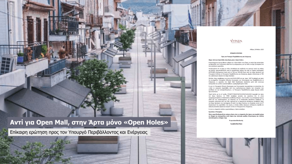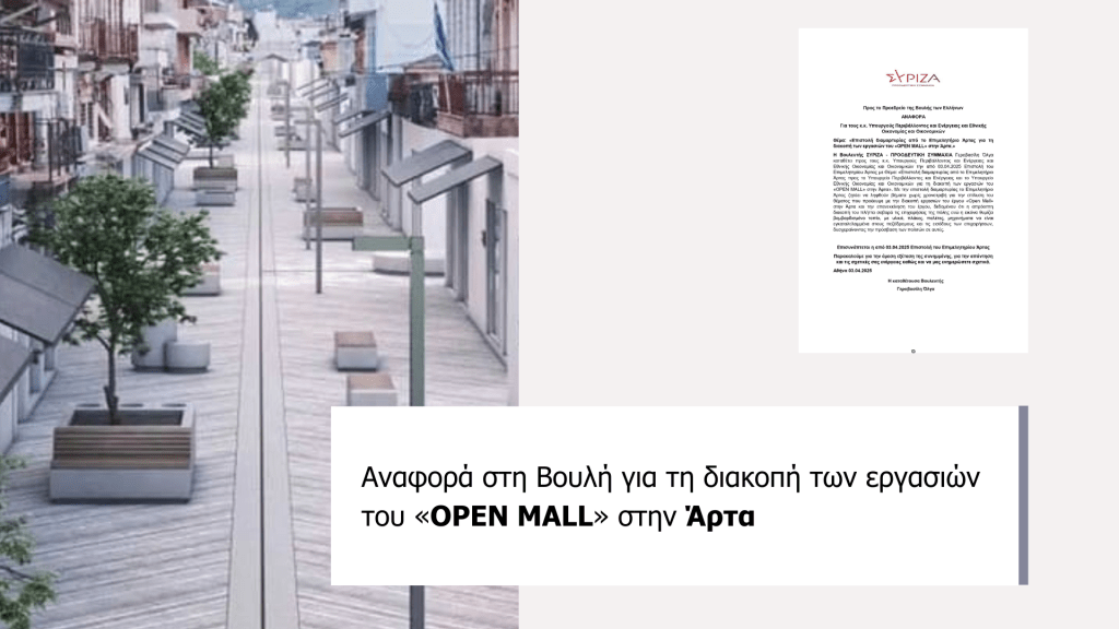 Συνέχεια ανάγνωσης «Αναφορά στη βουλή για τη διακοπή των εργασιών του «OPEN MALL» στην Άρτα»