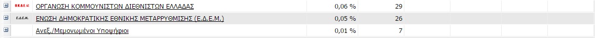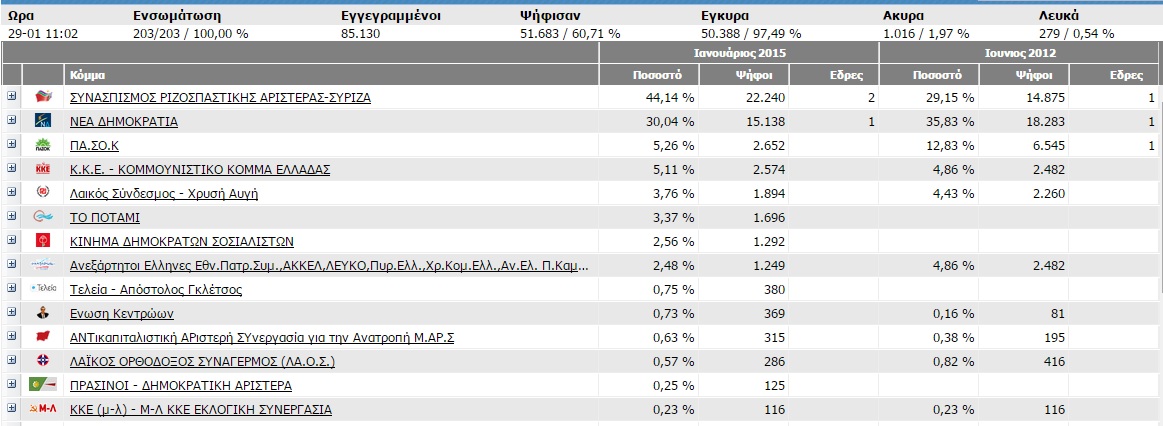 Σύνολο εγκύρων : 50308 Σύνολο για το ΣΥΡΙΖΑ : 22240