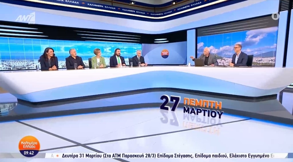 Παρέμβαση στην εκπομπή «Καλημέρα Ελλάδα» της τηλεόρασης του ANT1 και στους Μ. Αναστασοπούλου και Γ. Παπαδάκη