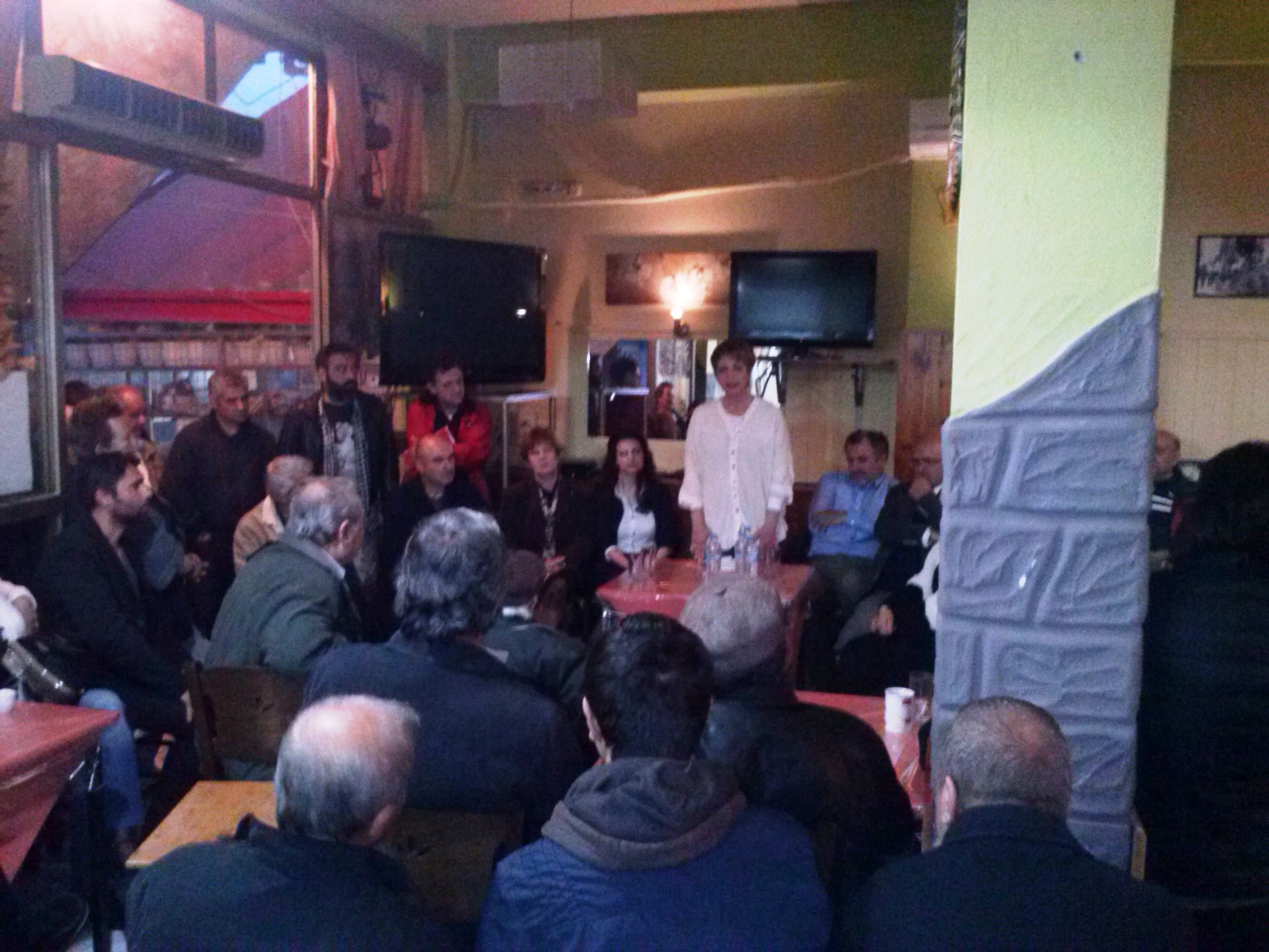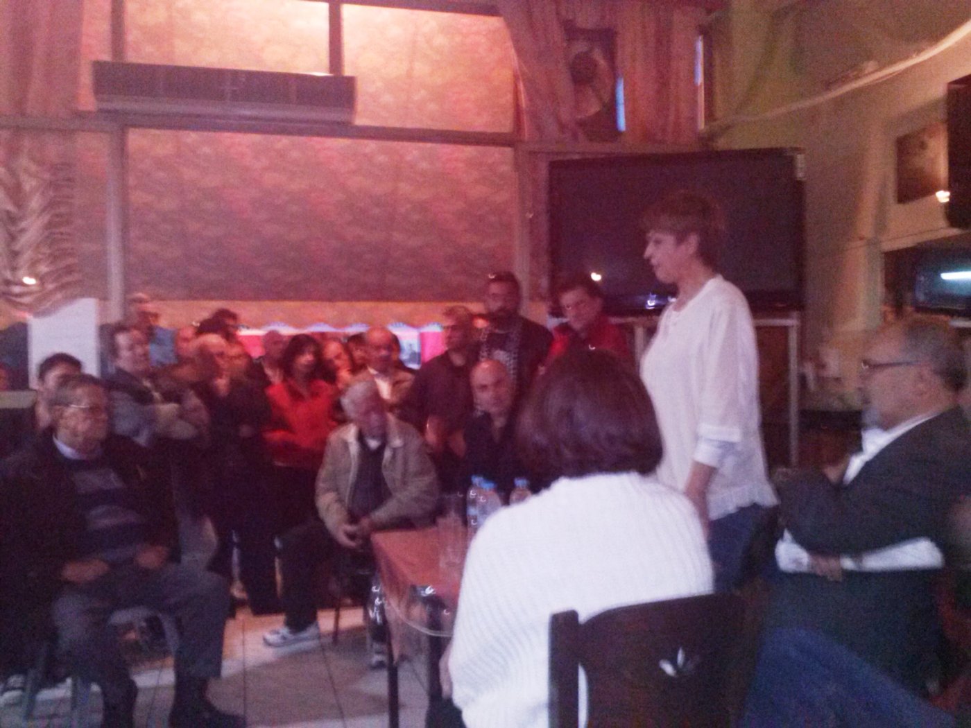 Στη συνέχεια, η Όλγα Γεροβασίλη, σε εκδήλωση σε κεντρικό καφενείο, γνωστοποίησε στους συγκεντρωμένους κατοίκους τις αρχές και τους στόχους του συνδυασμού, ενώ τόνισε πως η ψήφος των πολιτών στις επικείμενες αυτοδιοικητικές εκλογές θα πρέπει να έχει πολιτικό χαρακτήρα με σαφές αντιμνημονιακό μήνυμα.