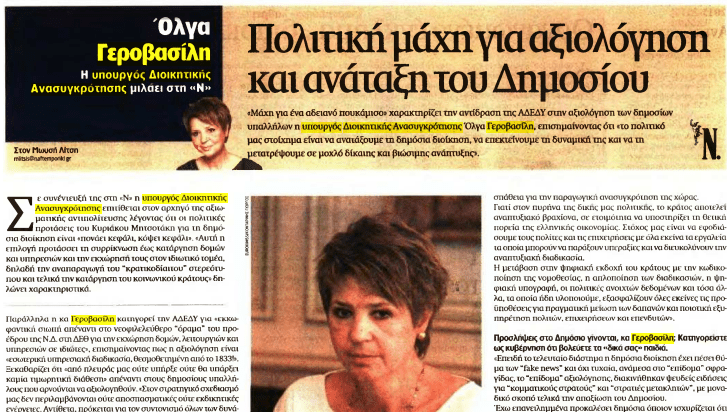 Συνέντευξη Υπουργού Διοικητικής Ανασυγκρότησης, Όλγας Γεροβασίλη στην εφημερίδα «Ναυτεμπορική» και το δημοσιογράφο Μωυσή Λίτση. Συνέχεια ανάγνωσης «Στον πυρήνα της δικής μας πολιτικής το κράτος αποτελεί αναπτυξιακό βραχίονα, σε ετοιμότητα να υποστηρίξει την θετική πορεία της ελληνικής οικονομίας»