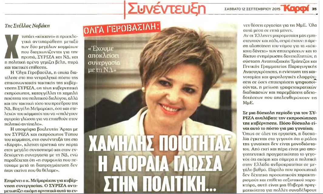 Συνέχεια ανάγνωσης «Συνέντευξη στην εφημερίδα «ΚΑΡΦΙ» και τη Στέλλα Νοβάκη»