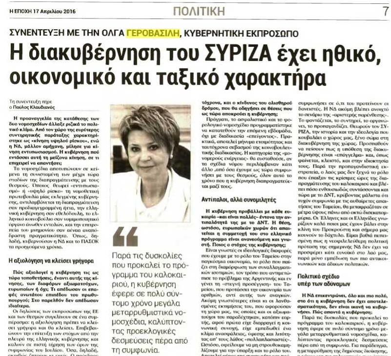 Συνέντευξη στην εβδομαδιαία εφημερίδα “Η εποχη” και στον δημοσιογράφο Παύλο Κλαυδιανό