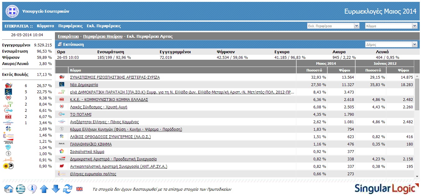 Ο λαός της Άρτας έδωσε μια ηχηρή απάντηση σ’ αυτούς που επιτίθενται βάναυσα στα εργασιακά του δικαιώματα, στα οικονομικά του κεκτημένα, στην αναπτυξιακή του προοπτική και στην κοινωνική του λειτουργία και συνοχή. Και έδωσε στον ΣΥΡΙΖΑ το τέταρτο μεγαλύτερο ποσοστό του στην Ελλάδα (32,68%).