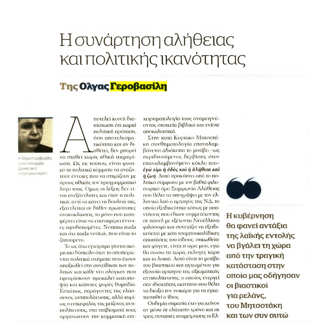 Άρθρο στην εφημερίδα «Documento» Συνέχεια ανάγνωσης «Η συνάρτηση αλήθειας και πολιτικής ικανότητας»