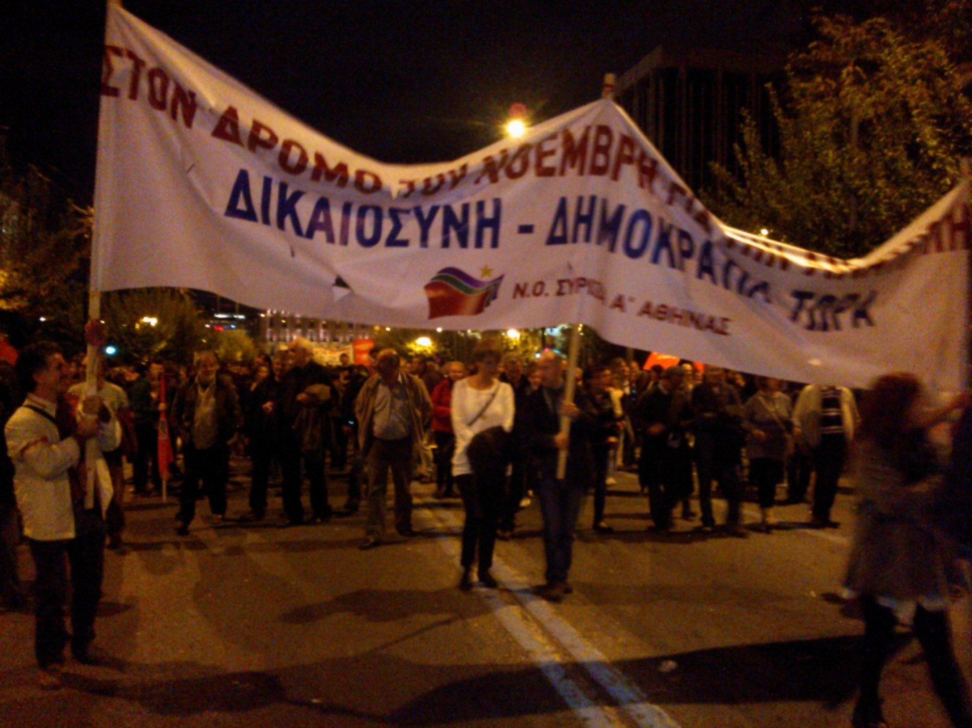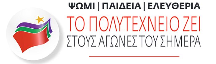Την ίδια στιγμή που η μνημονιακή κυβέρνηση προσπαθεί να καταργήσει κάθε έννοια συλλογικού δικαιώματος, που καταδικάζει τη νεολαία και τους εργαζομένους στη φτώχεια και την εξαθλίωση, το Πολυτεχνείο είναι εδώ. Στους αγώνες για κοινωνική δικαιοσύνη, ανεξαρτησία, ισότητα και κοινωνική απελευθέρωση. Στην υπεράσπιση της δημοκρατίας και των ελευθεριών, απέναντι στον κυβερνητικό αυταρχισμό και στο μονόδρομο των μνημονίων και της λιτότητας.