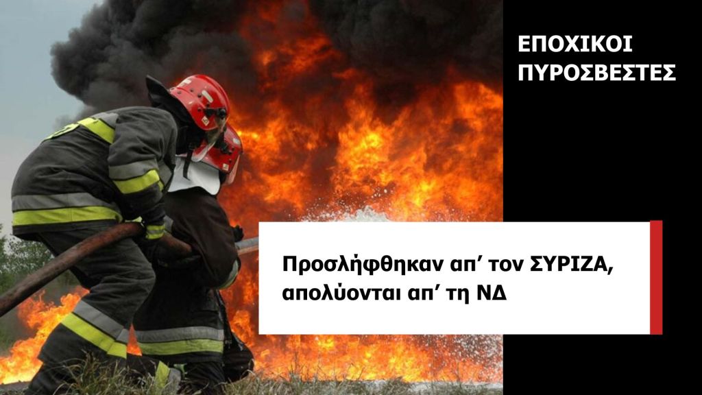 ΕΠΟΧΙΚΟΙ ΠΥΡΟΣΒΕΣΤΕΣ: Προσλήφθηκαν απ’ τον ΣΥΡΙΖΑ, απολύονται απ’ τη ΝΔ