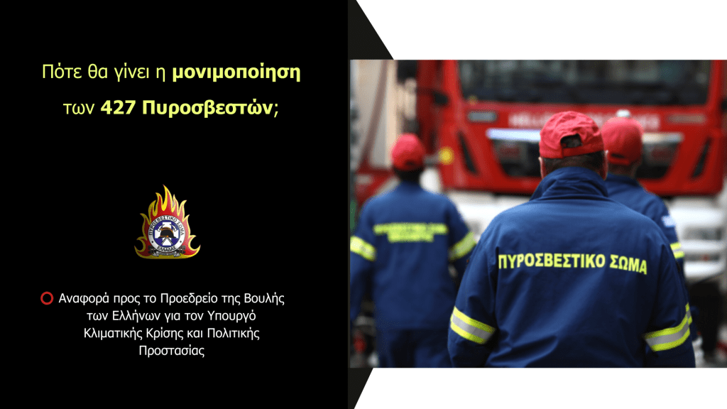 Συνέχεια ανάγνωσης «Πότε θα γίνει η μονιμοποίηση των 427 Πυροσβεστών;»