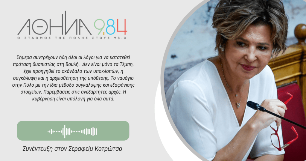 Συνέντευξη στο ρ/σ «ΑΘΗΝΑ 9.84» και στον δημοσιογράφο Σεραφείμ Κοτρώτσο