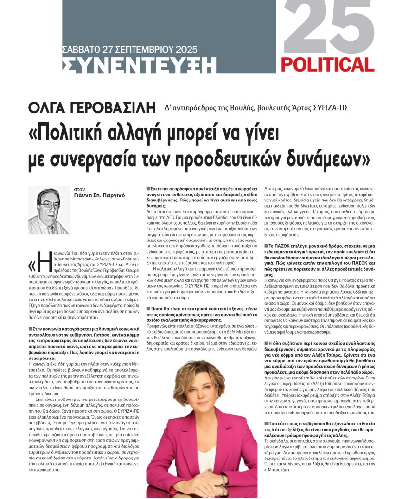 Συνέντευξη στην ψηφιακή εφημερίδα «Political» και στον δημοσιογράφο Γιάννη Παργινό