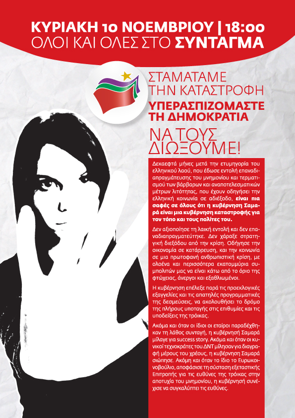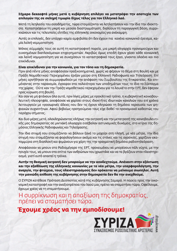 Φτάνει πια! Σταματάμε την καταστροφή, υπερασπιζόμαστε τη δημοκρατία, αγωνιζόμαστε για τις ζωές μας και το μέλλον των παιδιών μας.