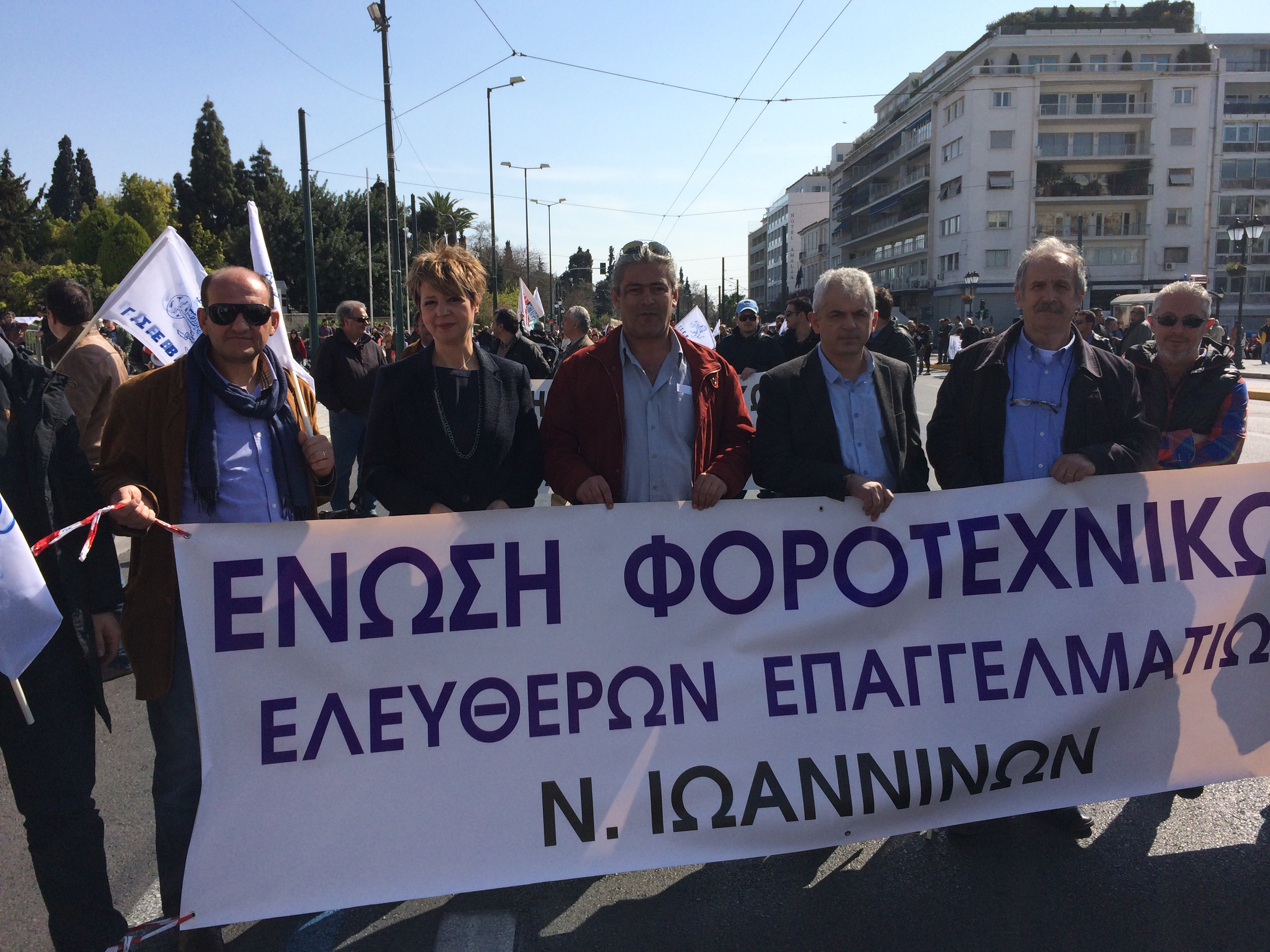 Στο πλευρό των Φοροτεχνικών της Ηπείρου, στη Πλατεία Συντάγματος, στην Αθήνα. Οι Φοροτεχνικοί συμμετείχαν στην κινητοποίηση της ΓΣΕΒΕΕ και στην διαμαρτυρία των φορέων κατά της ψήφισης του πολυνομοσχεδίου.