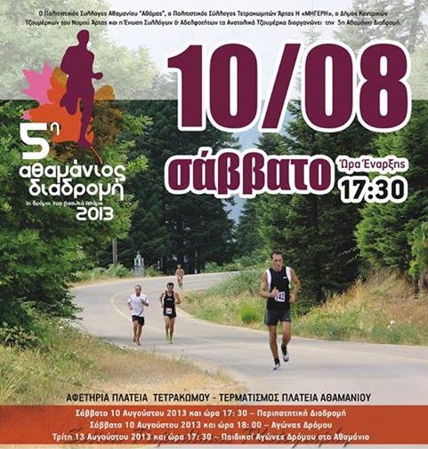 O Δήμος Κεντρικών Τζουμέρκων του Νομού Άρτας και η Ένωση Συλλόγων και Αδελφοτήτων του Δήμου διοργάνωσαν τον 5ο αγώνα δρόμου «Αθαμάνιος Διαδρομή» (ΔΡΟΜΟΙ ΤΟΥ ΒΑΣΙΛΙΑ ΑΘΑΜΑ), ο οποίος φέτος ήταν αφιερωμένος στην μνήμη της πρώτης προέδρου της Ένωσης Συλλόγων και Αδελφοτήτων του πρώην Δήμου Αθαμανίας, Λαμπρινής Παπαδήμα – Σπαή, που στάθηκε αρωγός στην υλοποίηση αυτής της διοργάνωσης και στην καθιέρωσή της ως θεσμό. Για το λόγο αυτό, η διαδρομή των αθλητών, για φέτος, ακολούθησε αντίθετη πορεία, με αφετηρία το Τετράκωμο και τερματισμό στο Αθαμάνιο, που ήταν και ο τόπος καταγωγής της Λαμπρινής Παπαδήμα – Σπαή.