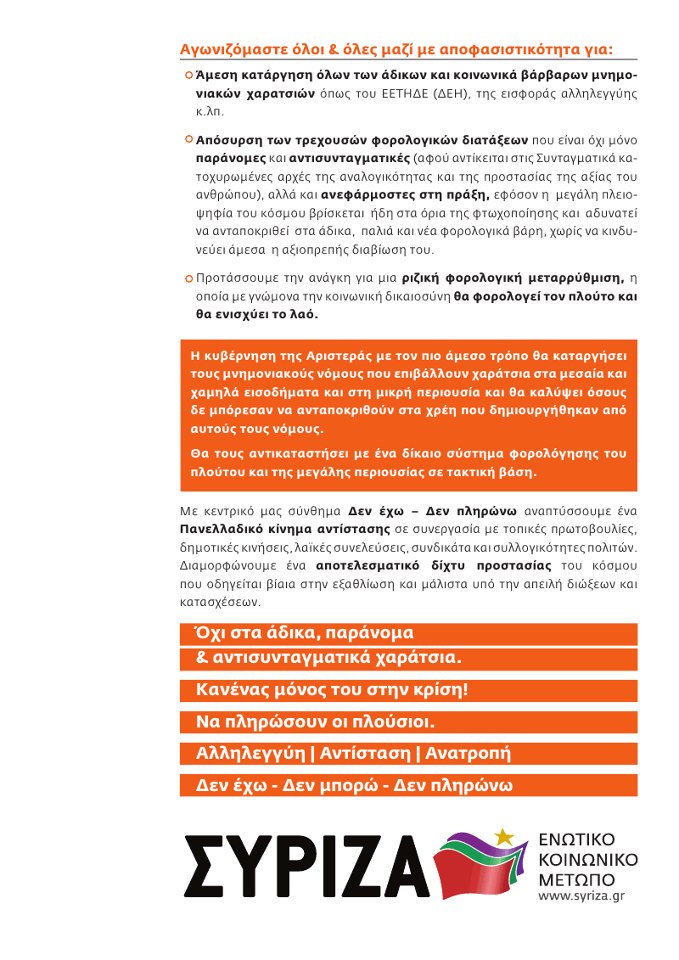Αναγκαίο στοιχείο της Δημοκρατίας είναι η διασφάλιση της διαφάνειας σε όλους τους τομείς της κυβερνητικής πολιτικής. Ιδιαίτερα στον τομέα της φορολογίας τα αναλυτικά στοιχεία και τα στατιστικά δεδομένα πρέπει να δημοσιεύονται ανά τακτά χρονικά διαστήματα ώστε να μπορούν οι πολίτες καθώς και οι επιστημονικοί και κοινωνικοί φορείς να βγάζουν συμπεράσματά για την φορολογική πολιτική της κυβέρνησης. Πόσο μάλλον μιας κυβέρνησης που κατηγορείται από την συντριπτική πλειοψηφία των πολιτών για τις φορομπηχτικές της επιλογές!